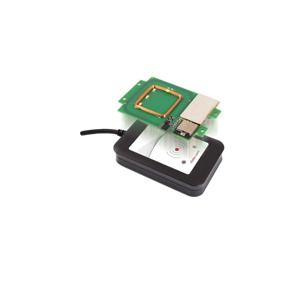 This RFID reader is also available without the black packaging, just the chip (board). This option enables developers and companies to design their own systems for integration into more complex devices. They can customize the functionality and appearance of the entire system to suit their needs. The board can be integrated into doors, turnstiles or printers.