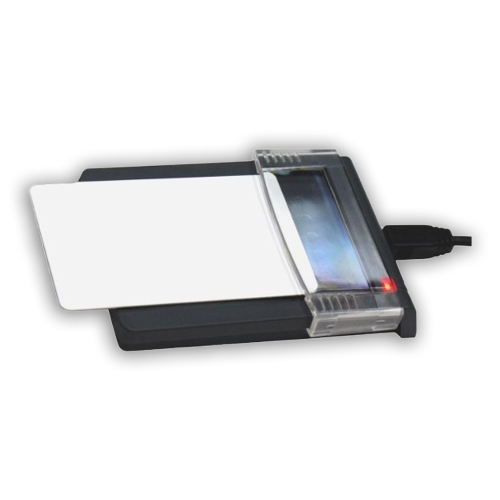 This reader combines perfectly with our blank and personalized RFID cards.