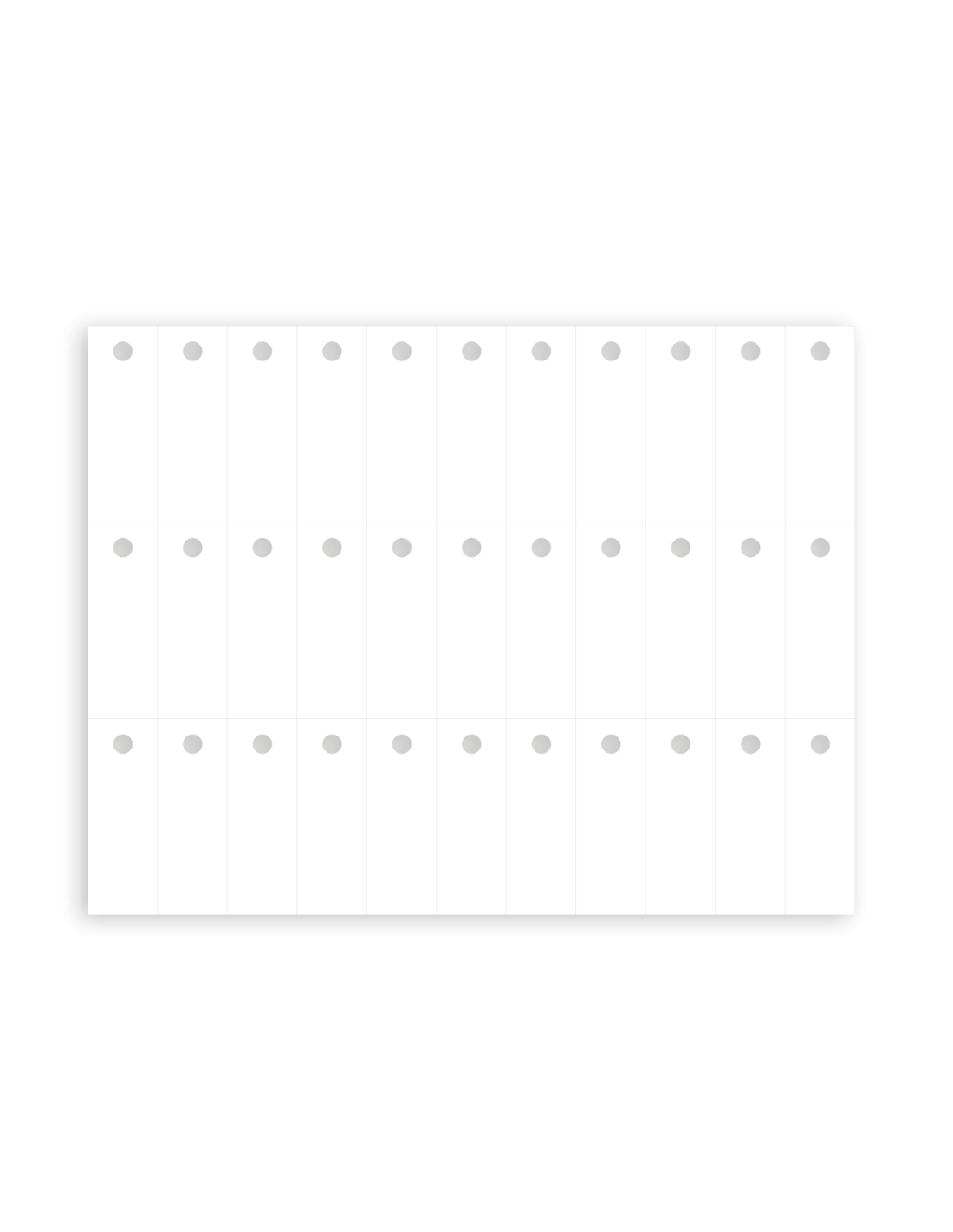 | Reference | Quantity | Number of labels per sheet | Number of boards per box | Film thickness | Size | Hole diameter (in mm) | Side of the hole (on length or width) |