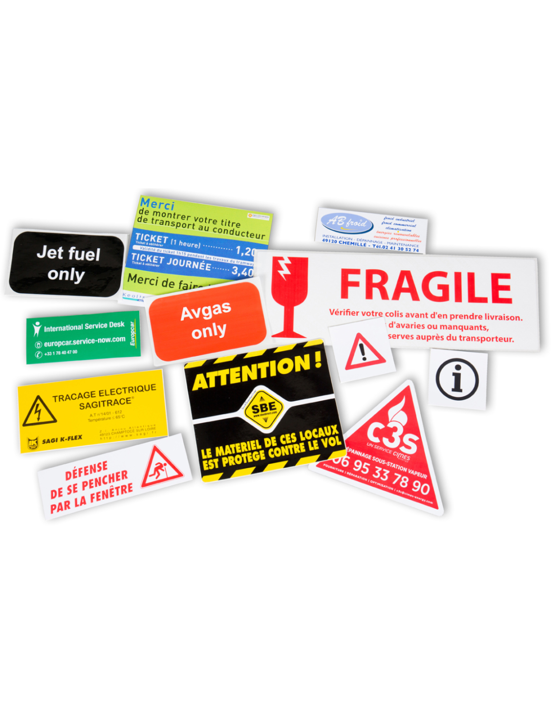 On the other hand, if your stickers are used to identify your goods and industrial machines, with a purely logistical purpose, then a polycarbonate label will be more appropriate. Indeed, this product has the strongest fixation on the market. Thus, our range of polycarbonate stickers allows you to withstand extreme temperatures ranging from -80 C° to +150 C°, steam jets, chemicals, hydrocarbons, solvents, acids, and even sunlight.
