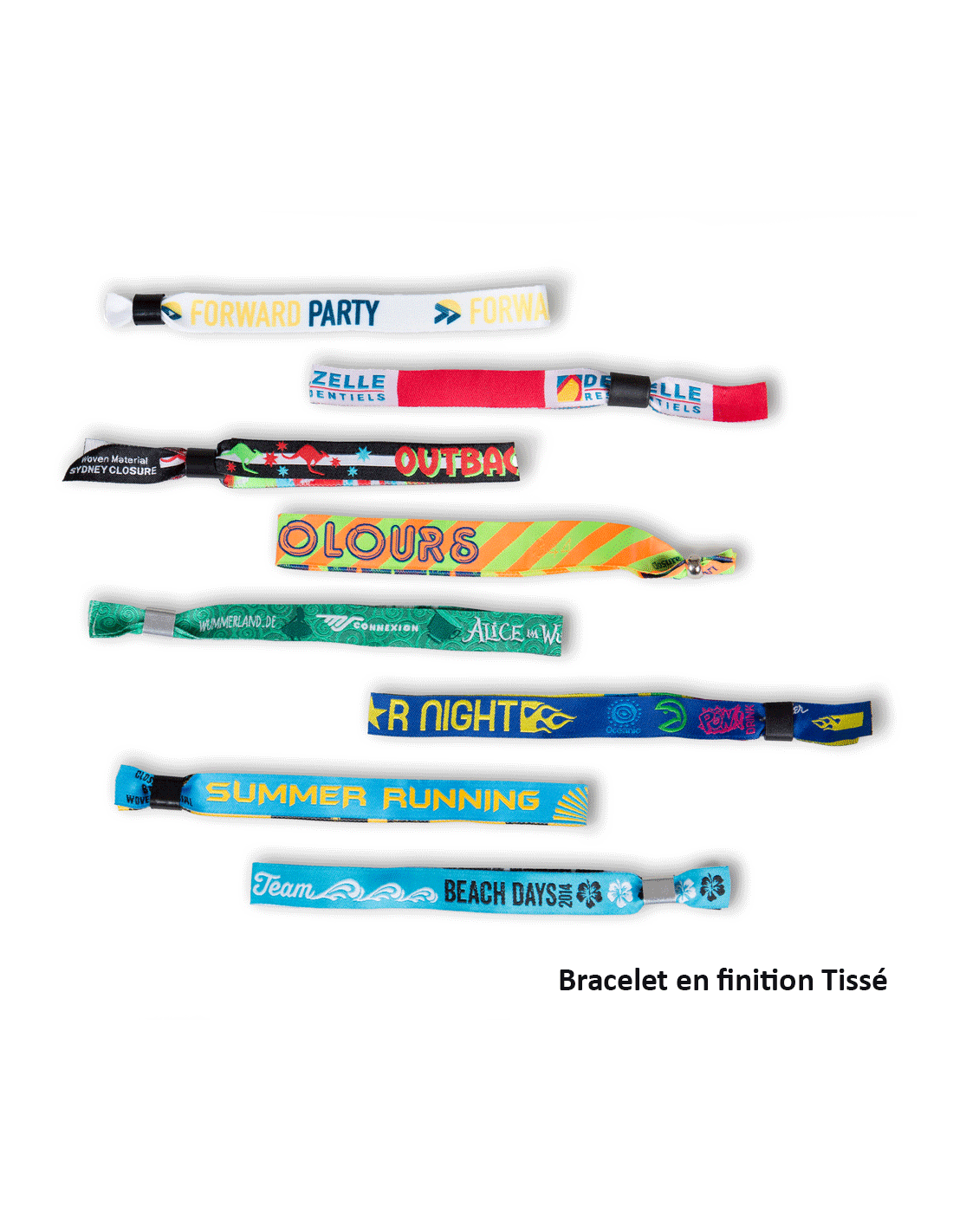 A true fashion item and promotional product, the event fabric wristband is often kept for a long time by those who wear it. It thus conveys the image, logo, and/or brand of your company. The very fine weaving of the festival or party wristband and its particularly tight stitches make it a fabric wristband of very high quality, extremely durable over time. This personalized fabric wristband will serve as a memento of your event’s success.