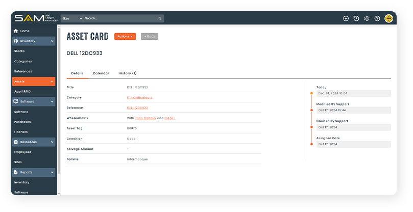 Some software limits tracking to predefined default assets. With SAM, you stay in full control: you create and track the assets that truly matter to your business.