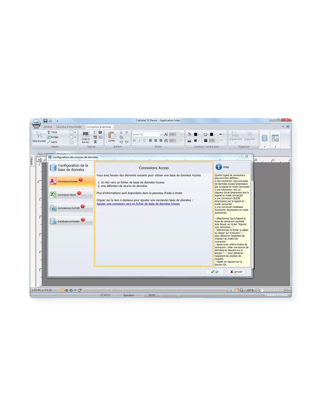 You can export data from a source file to be used on your labels. Configure Access or Excel files, or use the Database Connector option.