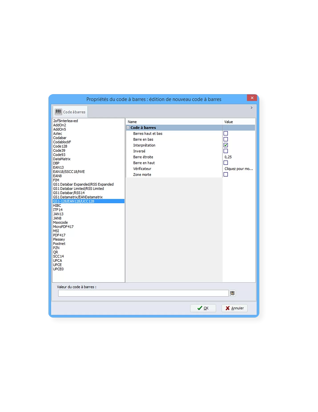 - Barcode wizard ensures optimal readability for codes like EAN 18, GS1-128, GS1 Datamatrix, Datamatrix (FACT), PDF417 (FACT), and QR.