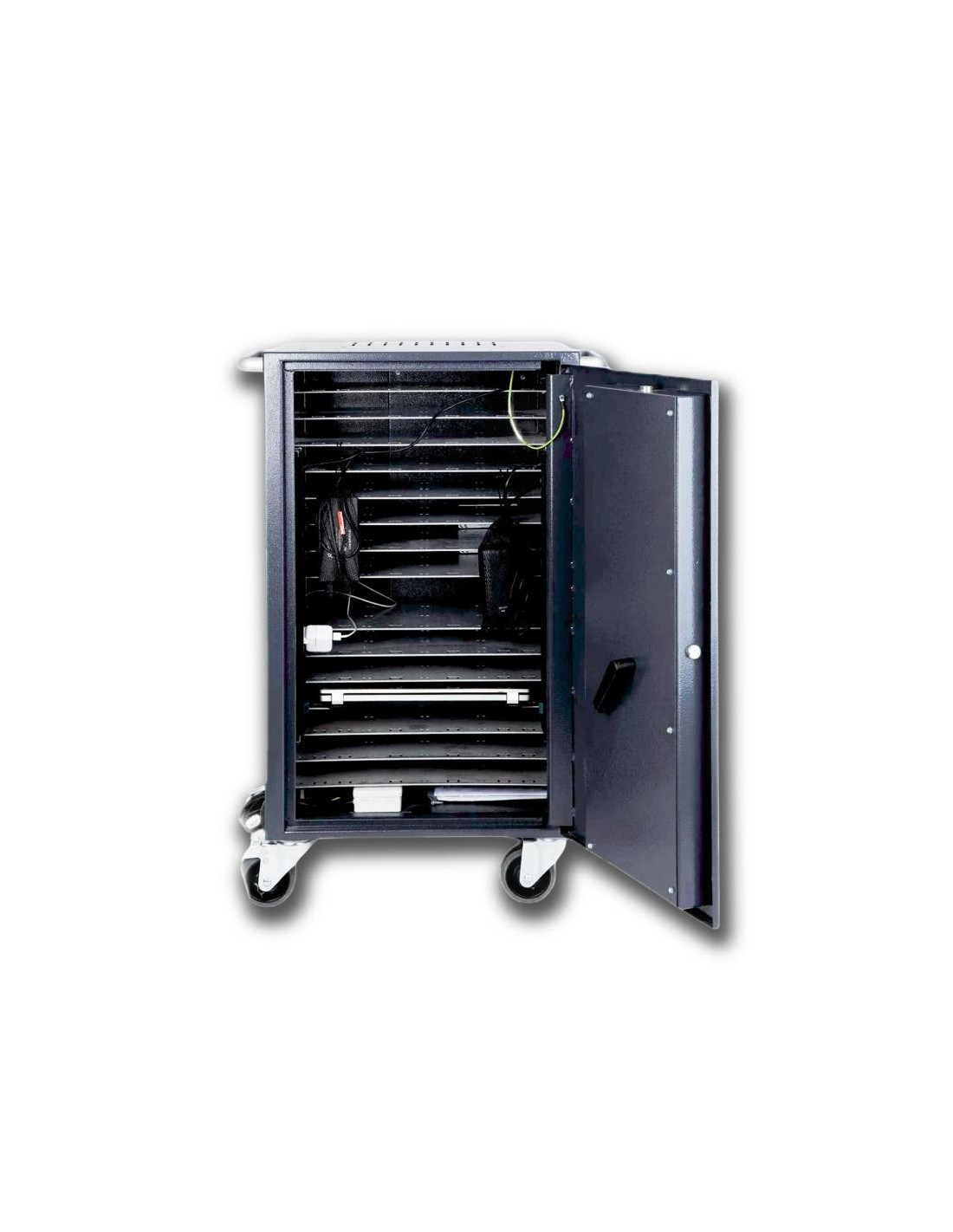 This laptop cart is designed to meet the demands of modern educational environments. It enables the simultaneous charging and securing of multiple laptops, optimizing the management of digital resources in the classroom. Its mobility and durability make it an ideal solution for schools seeking to integrate innovative technologies into their programs, while ensuring the safety and longevity of their equipment.