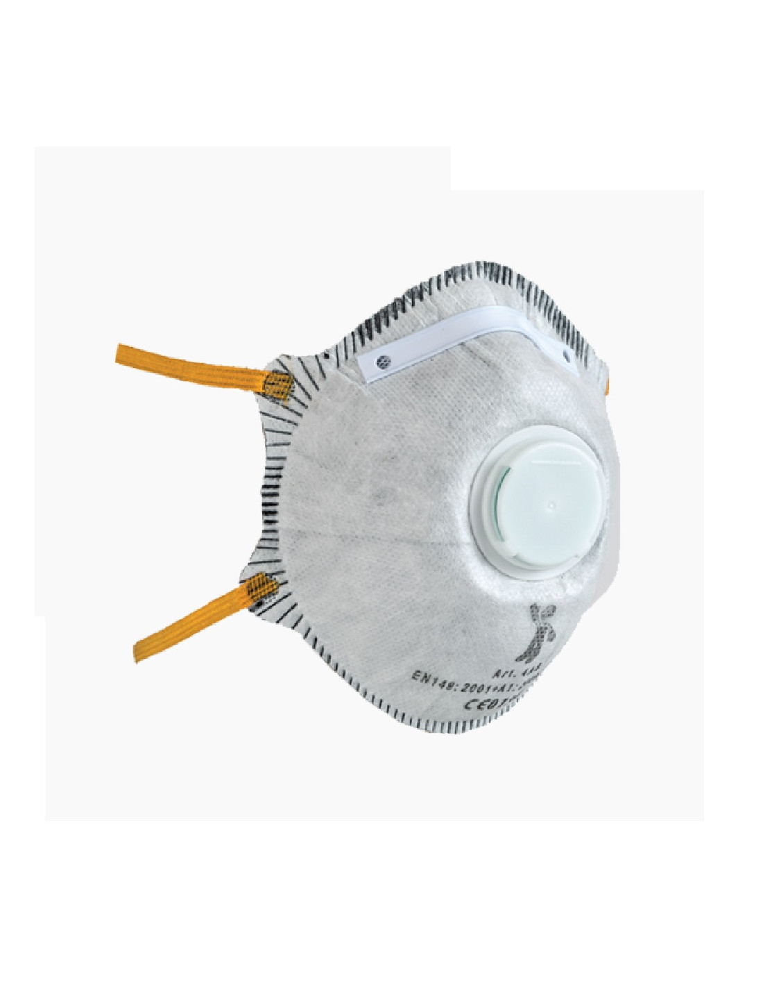 FFP1 disposable filtering mask with valve and activated carbon. Lightweight and comfortable, this mask is effective for the protection of users exposed to dust and fumes.