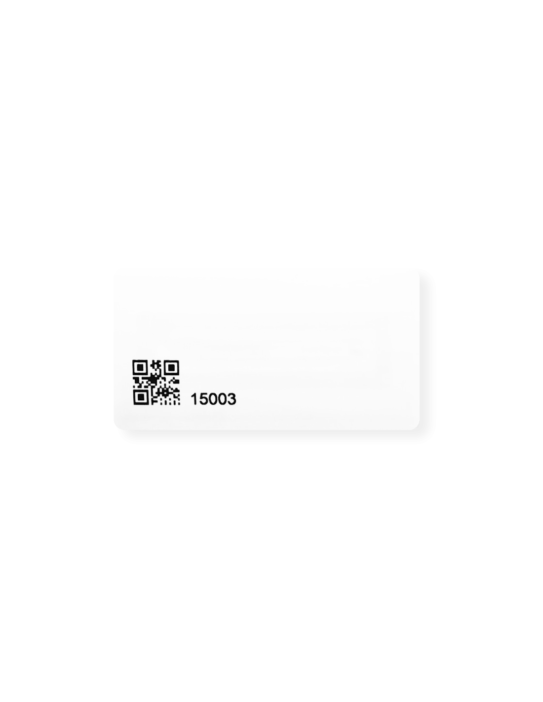 The label is equipped with a number on the left, a QR code that can be scanned with a smartphone, and can also be read with an HF RFID reader.