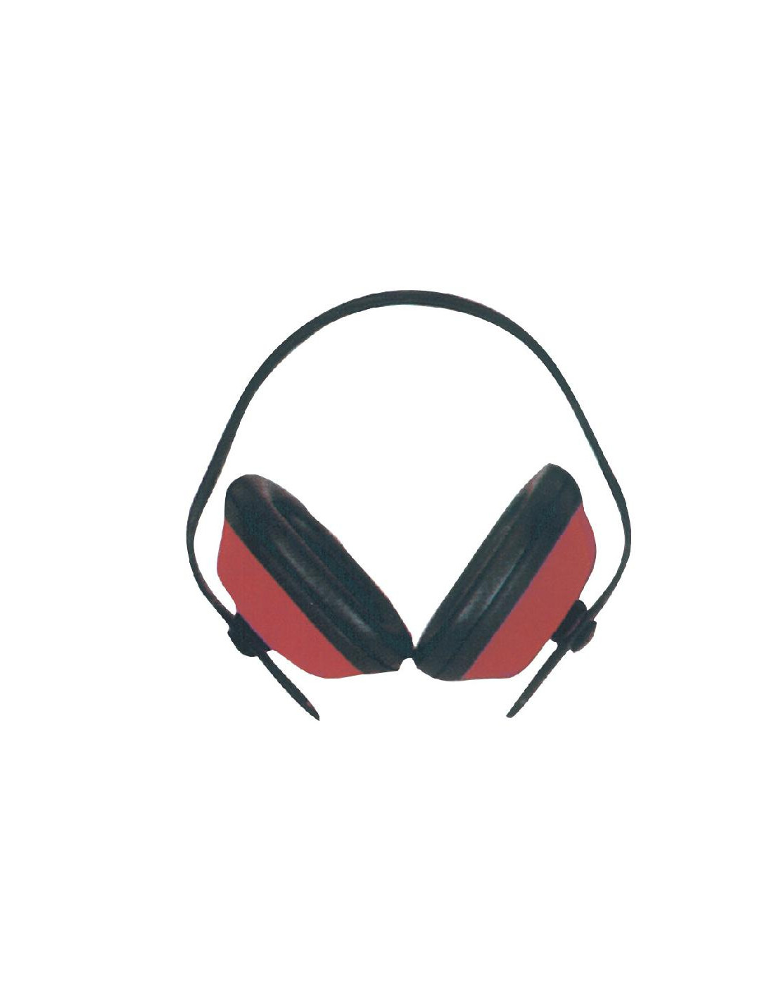 Polypropylene hearing protection helmet with red shells that slide up and down on the black headband. Adjustable, this ear muff attenuates up to 25.7 dB
