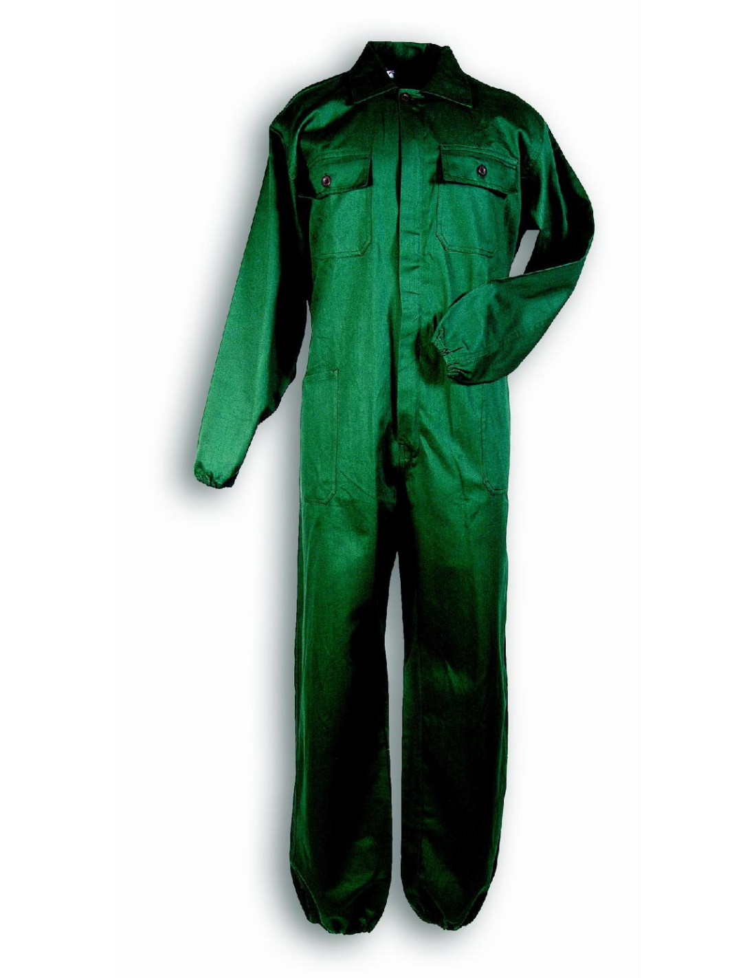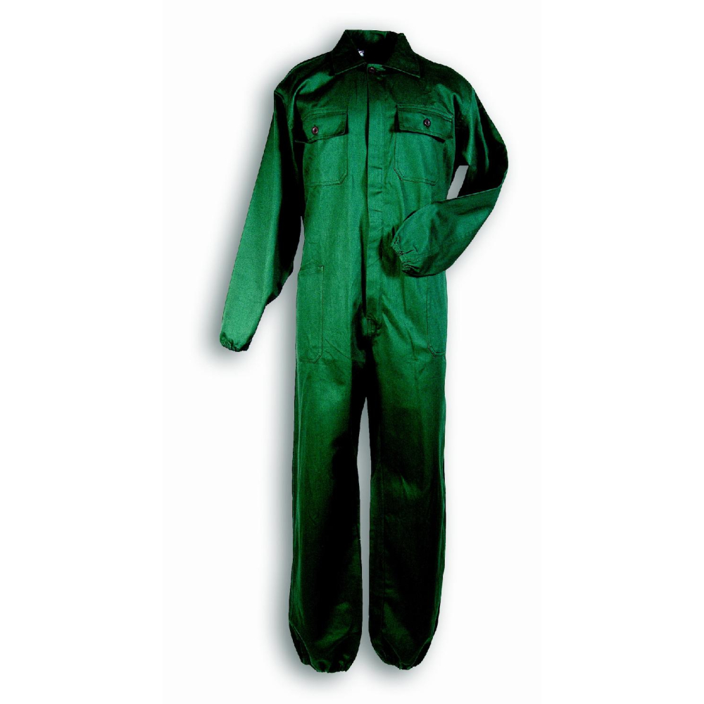 The combination is green in color and is 100% cotton, with a weight of 250g/m². It is equipped with elastic bands and ankles, a covered frontal zipper and a meter carrier for more practicality.