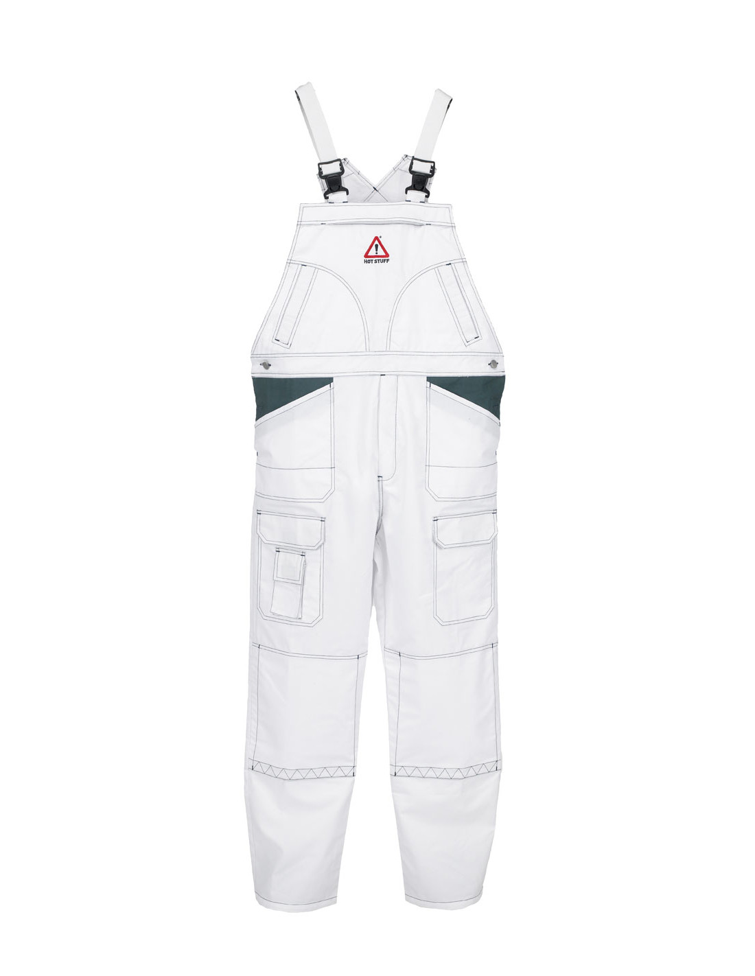 The overalls is 65% polyester and 35% cotton, with a weight of 180g/m². It has several pockets and has an adjustable size.