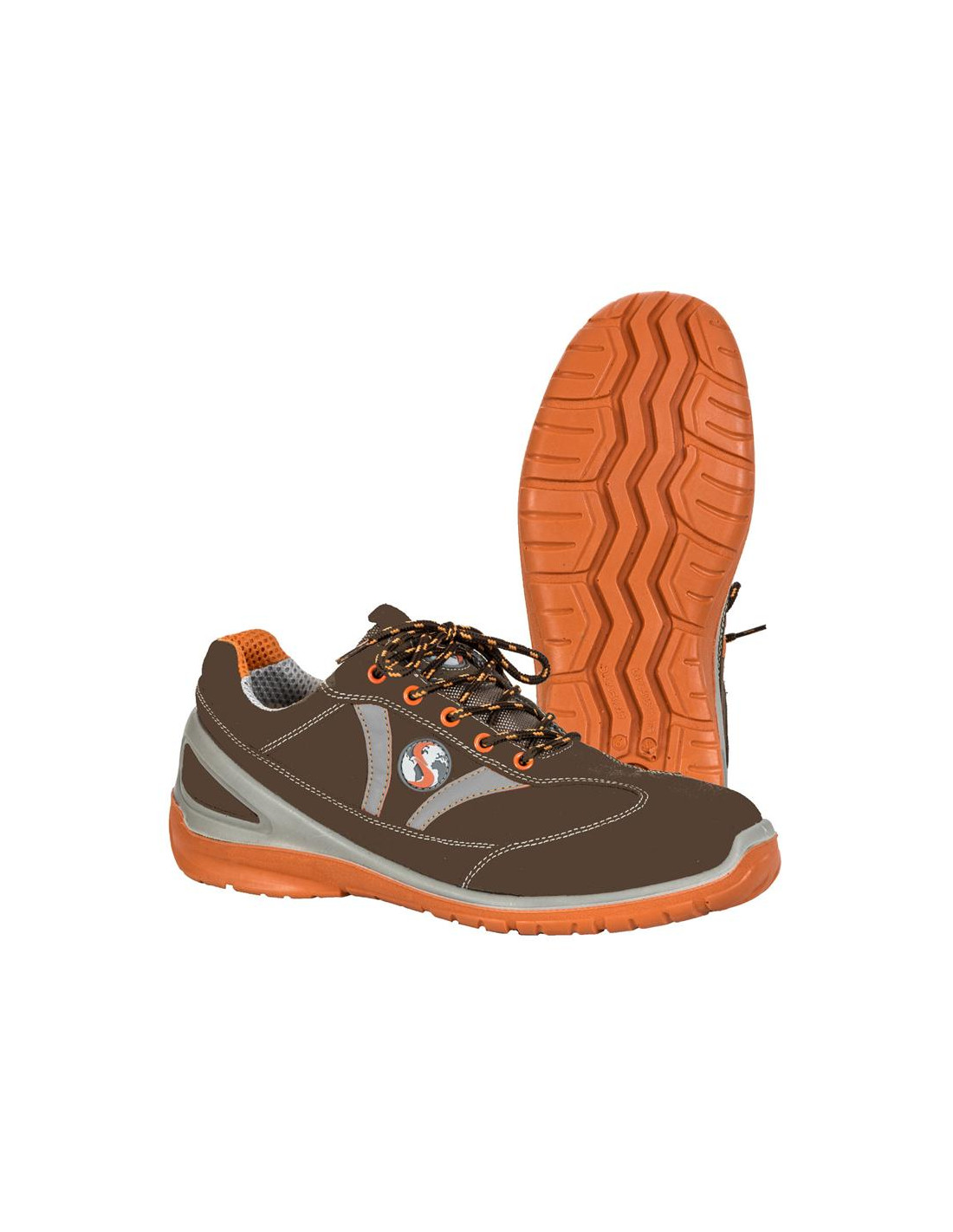 Low shoe in brown nubuck with steel tip and anti-perforation textile sole. The dual density PU outsole is antistatic, non -slip and oil and hydrocarbons resistant.