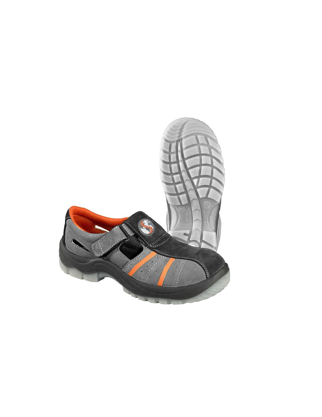 breathable velvet leather sandal, gray color, with composite tip and textile anti-perforation sole, metal without metal. Outsole in polyurethane PU double density, non -slip, resistant to oils and hydrocarbons, antistatic.