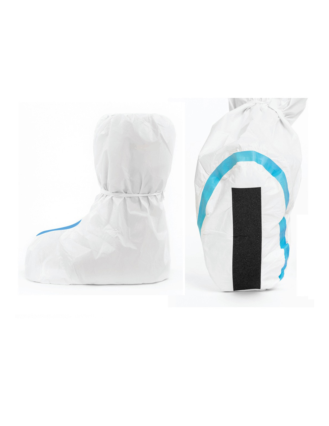 Our white protection boots are made of polypropylene (PP), a robust and shock resistant material. These boots have a film of microporous microporous tissue breathing in polyethylene (PE), which allows the feet to breathe while protecting them from various substances and particles. The sole is in non -slip PVC, which ensures good grip on the ground and prevents slides and falls.