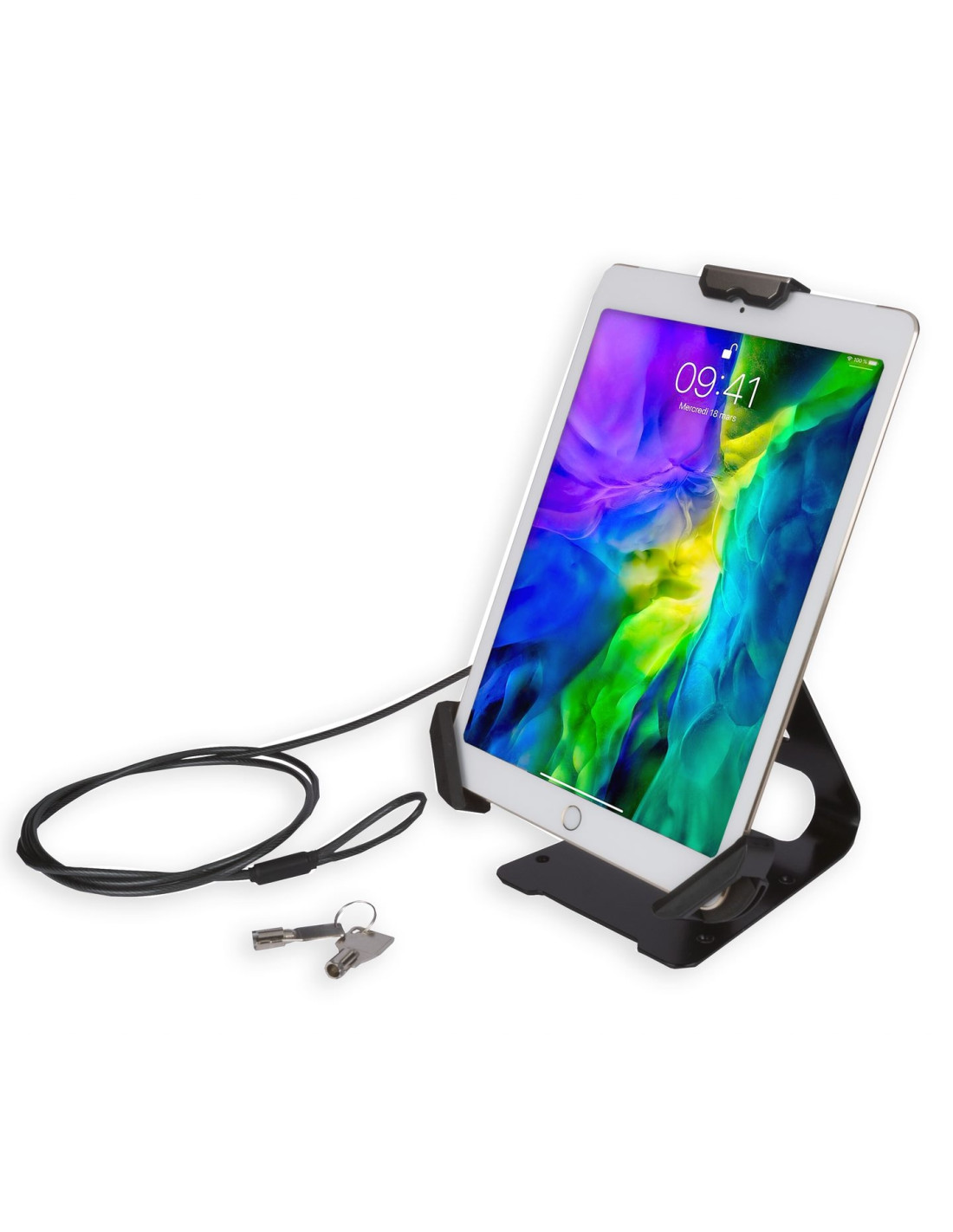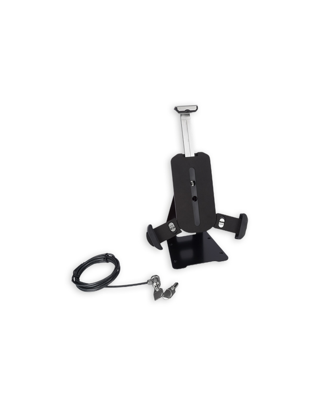 With its adjustable attachment system, this anti-theft stand for tablets will easily accommodate any tablet between 10 and 13 inches such as iPad, Galaxy Tab or the Surface.