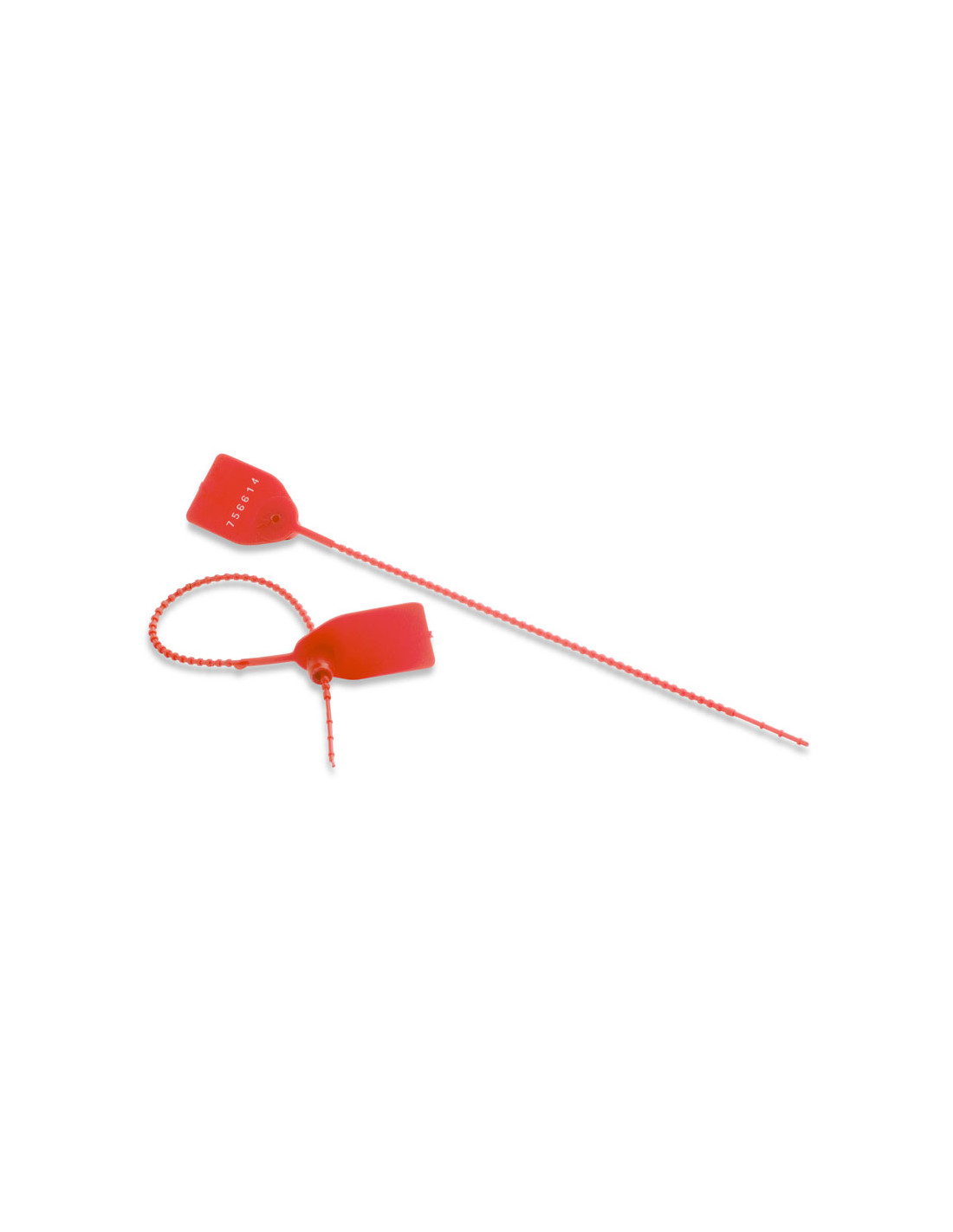 Made of a 28x35mm polypropylene tag, with a width of2.5mm, a total length of251mm and a useful length of 210mm, these adjustable transport seals are resistant to a pull force of 12kg. Mainly intended for the traceability of truck trailers, they can also be used for containers or equipment legally subject to tracking standards. (Also exist with a total length of 320mm and 420mm)