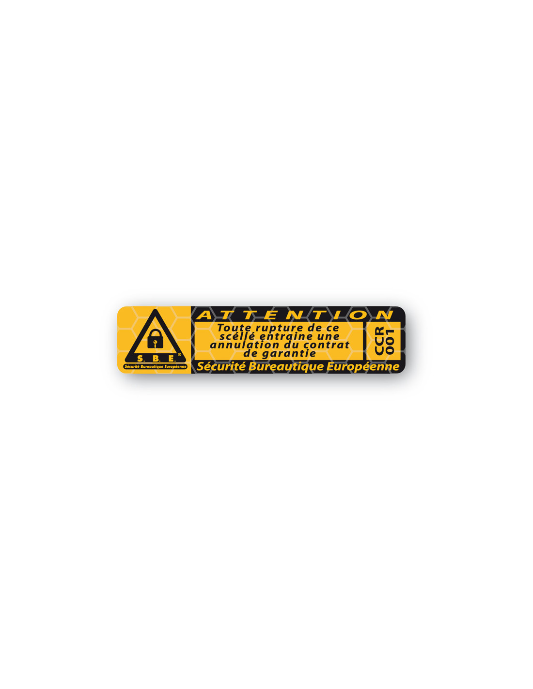 The technology used for this seal, which directly connects a very powerful adhesive and inks, automatically leaves visible traces if one tries to remove the seal that has been previously placed on a document or object. Thus, the seal dissuades anyone from fraud.