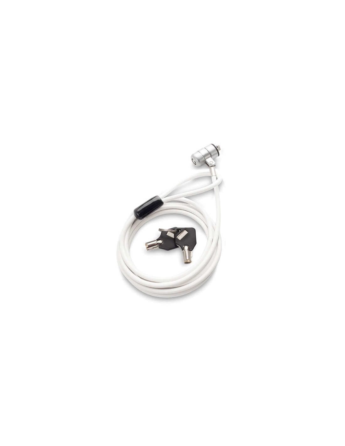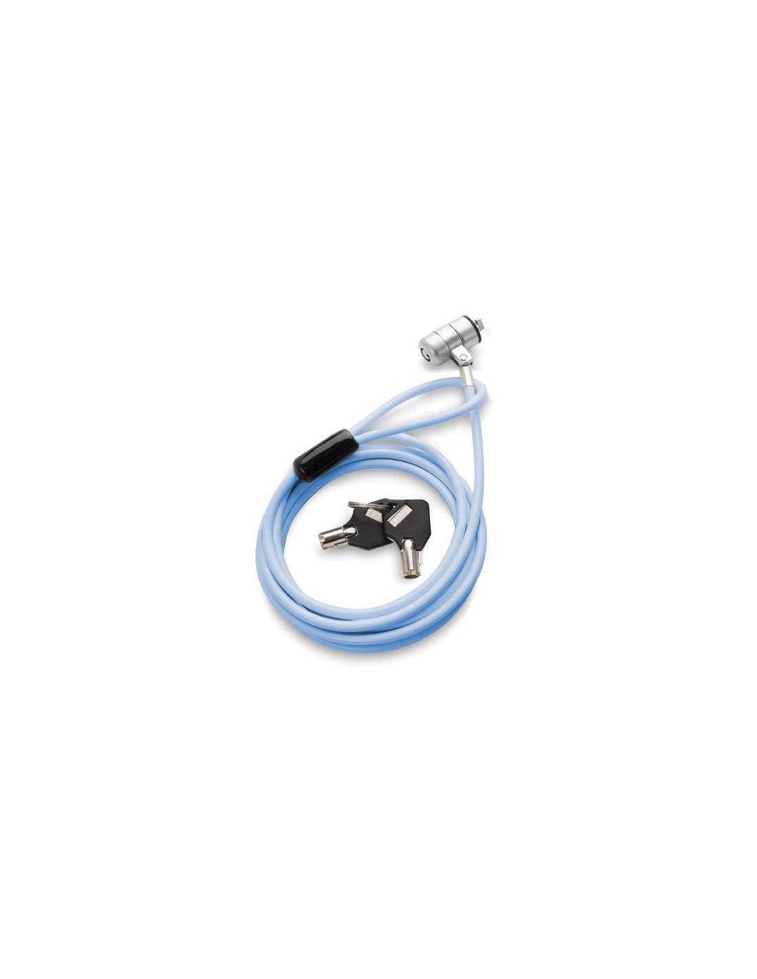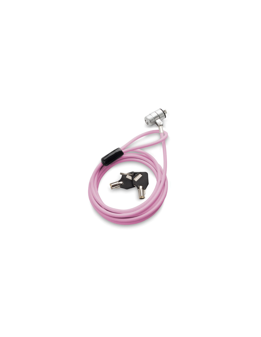 Le cable antivol pc éco est disponible en 3 couleurs : rose, blanc et bleu clair. Câble en acier 1,75 m, Ø 2 mm (extérieur Ø 3 mm), Poids 90 g. Livré avec 2 clés numérotées.