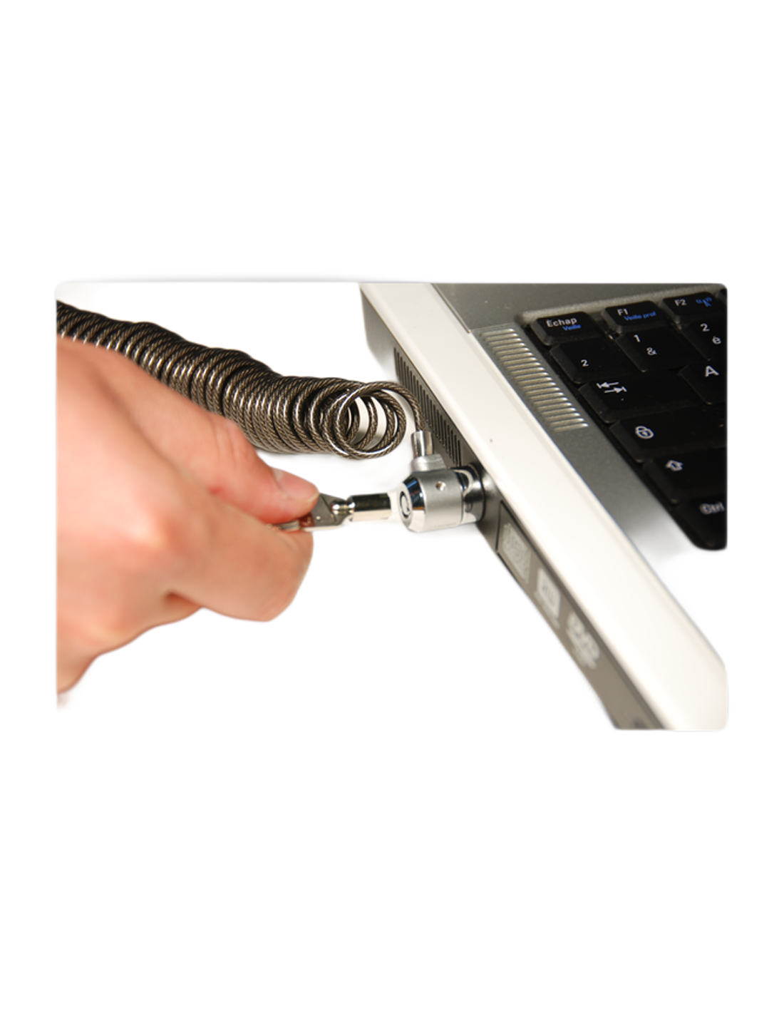 Ce cable antivol pour ordinateur portable en acier (Ø 1,5mm, Ø total 2mm) difficilement sécable est conçu spécialement pour offrir un bon niveau de sécurité à tout ordinateur portable, surtout les plus fins. Sa forme en spirale permet une installation et une utilisation aisées.