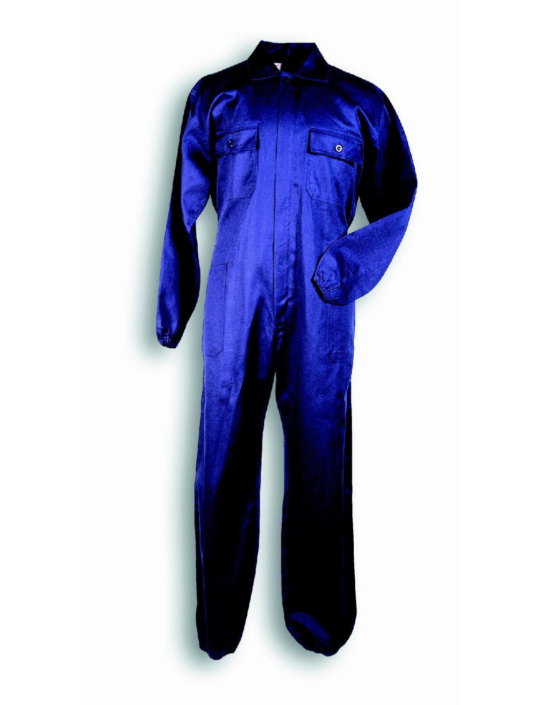 La combinaison de couleur bleue est en 100% coton, avec des poignets et des chevilles élastiques pour un ajustement optimal. La fermeture éclair frontale est recouverte pour une meilleure étanchéité. La combinaison dispose également d’un porte-mètre et a un poids de 250g/m².