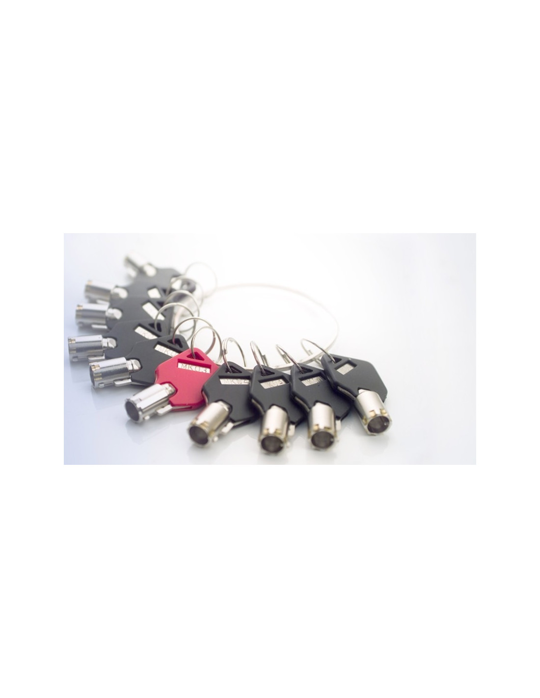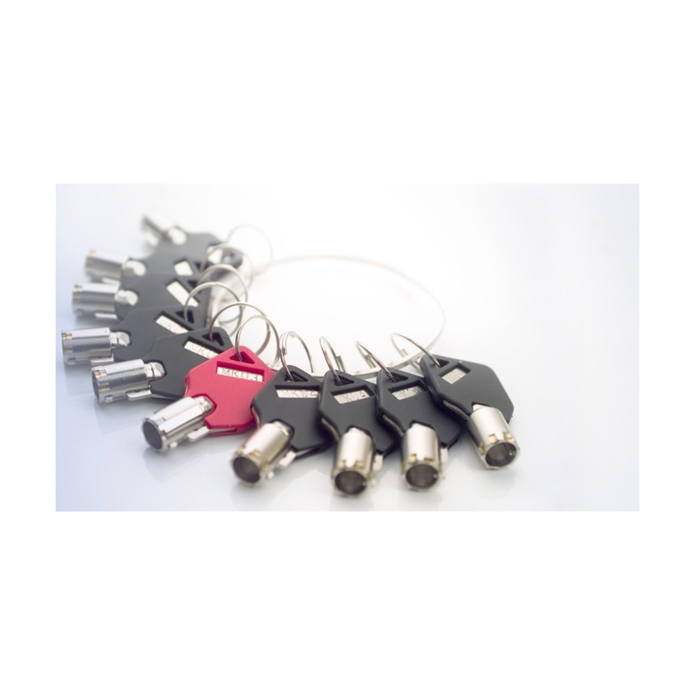 La clé passe pour le stand antivol universel pour câble antivol universel 3-en-1 est une clé maître qui ouvre les serrures de tous vos câbles avec serrures différentes.