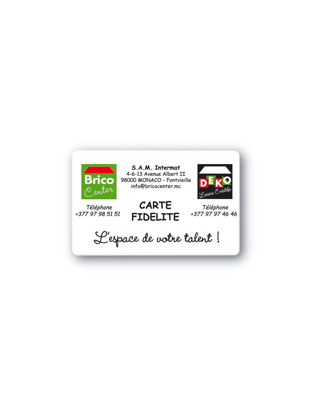 Le format des cartes PVC est similaire à celui des cartes bancaires (86x54,03mm), et sa taille leur permet de se glisser dans le portefeuille. Vous pouvez utiliser l’imprimante pour personnaliser la carte PVC. L’épaisseur de cette carte PVC "haut de gamme" est de 750 microns (qualité et matière de la carte bancaire). La carte en plastique se compose d’un noyau de 320 µ et d’une pile recto / verso de 250 µ.