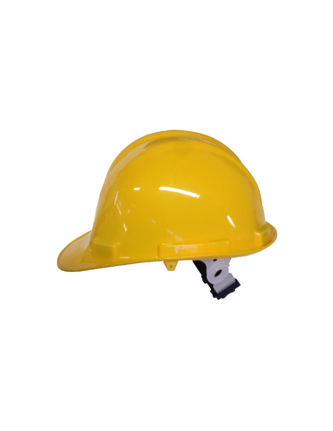 Casque de sécurité en polypropylène réglable. Il est doté d’une roue de réglage, d’un harnais de 4 points de fixation, d’un support en tissu de nylon et d’un bandeau frontal en mousse.