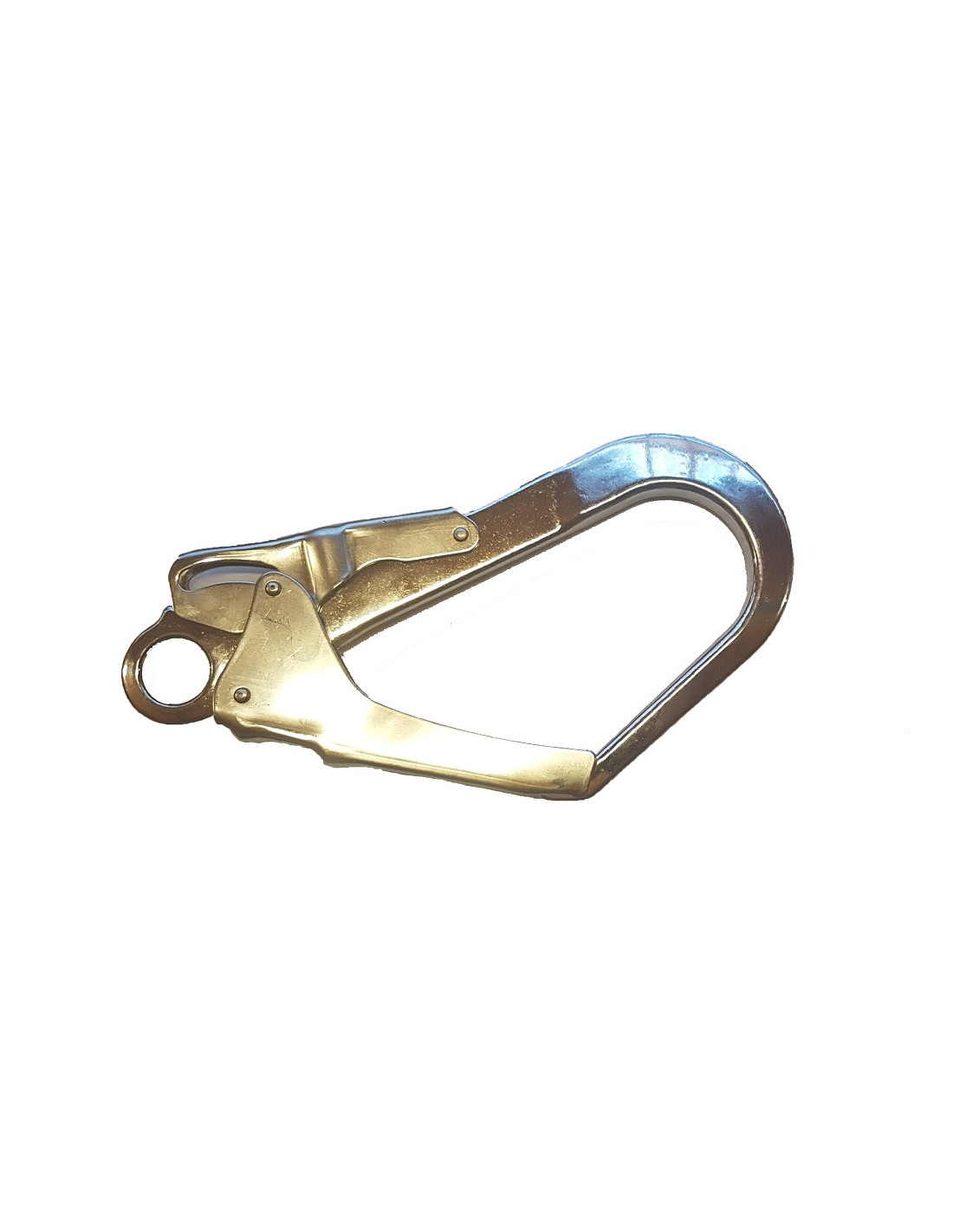 Mousqueton à double levier en alliage léger avec une ouverture de 52 mm et une résistance de 25 kN.