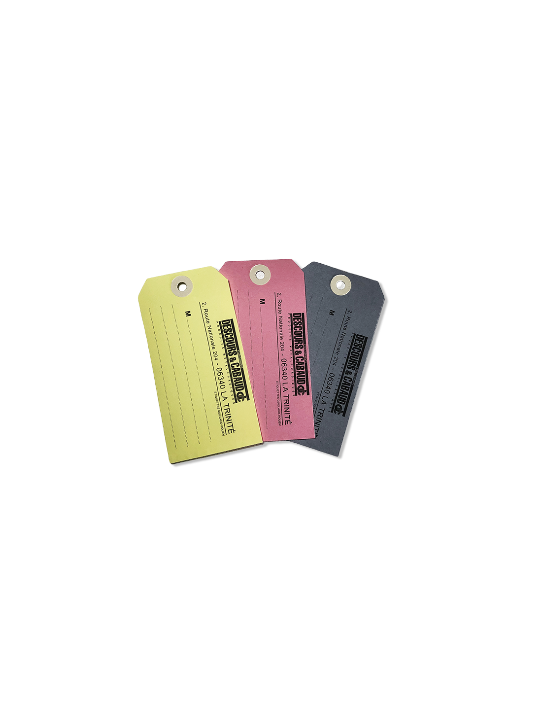 La carte de haute qualité de 160 gr/m² confère une résistance optimale au temps et à l’usure. De plus, l’œillet de renforcement empêche à l’étiquette américaine de se déchirer une fois accrochée.