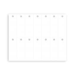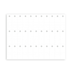 Référence | Quantité | Nombre d’étiquettes par planche | Nombre de planches par boite | Epaisseur du film | Format | Diamètre du trou (en mm) | Côté du trou (sur longueur ou largeur) |