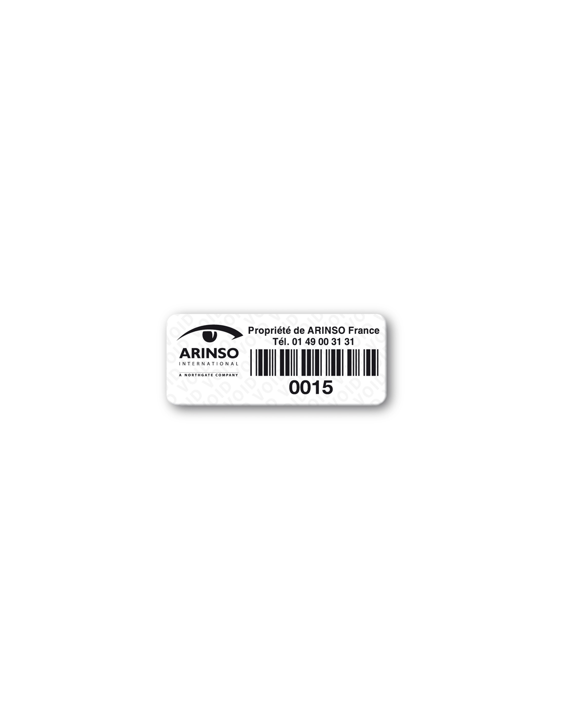 Il vous est possible de faire figurer des informations variables sur ces étiquettes anti-fraude tels que des numérotations, codes-barres, QR codes, mais également des informations fixes : textes et logos, ce qui renforcera l’image de marque de votre société grâce à l’etiquette personnalisée apposée sur vos biens.