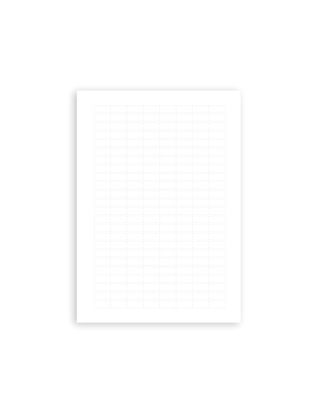| Référence | Nombre d’étiquettes par boite | Nombre d’étiquettes par planche | Nombre de planches par boite | Format |