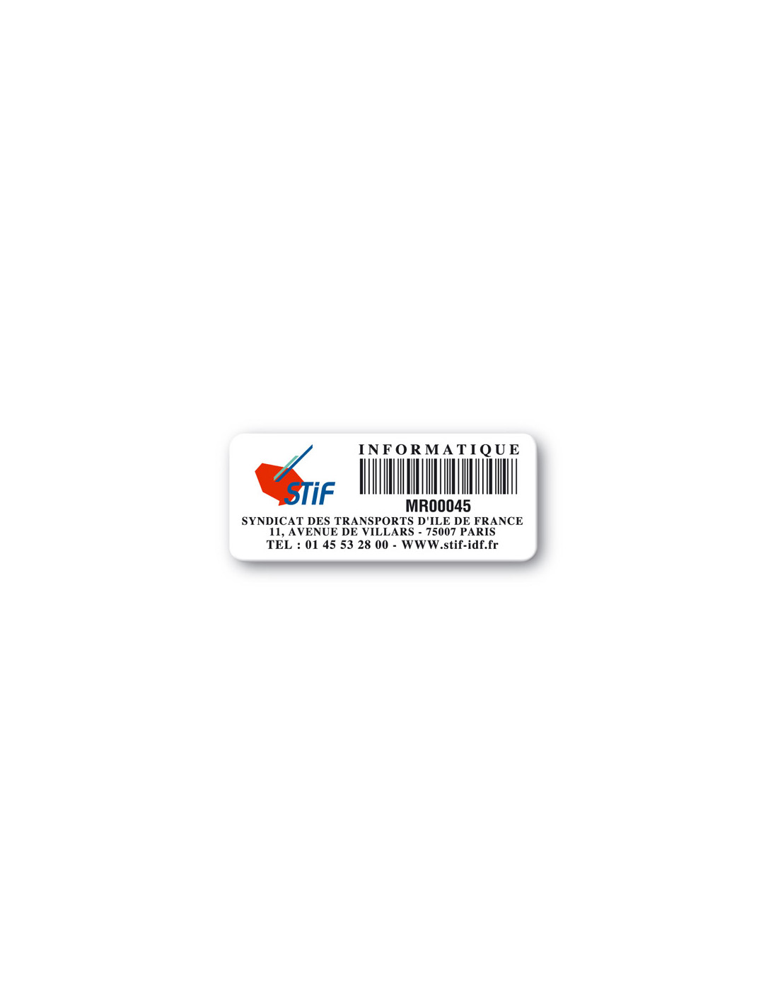 Dans les trois mois qui suivent la réalisation d’un inventaire avec des étiquettes de première classe, environ 10% du parc a perdu son identification en raison de l’arrachage et du déplacement intempestif de ces dernières. Grâce à cette etiquette destructible vous réduirez considérablement le risque de défaut de celui-ci puisqu’elle est totalement intransférable.