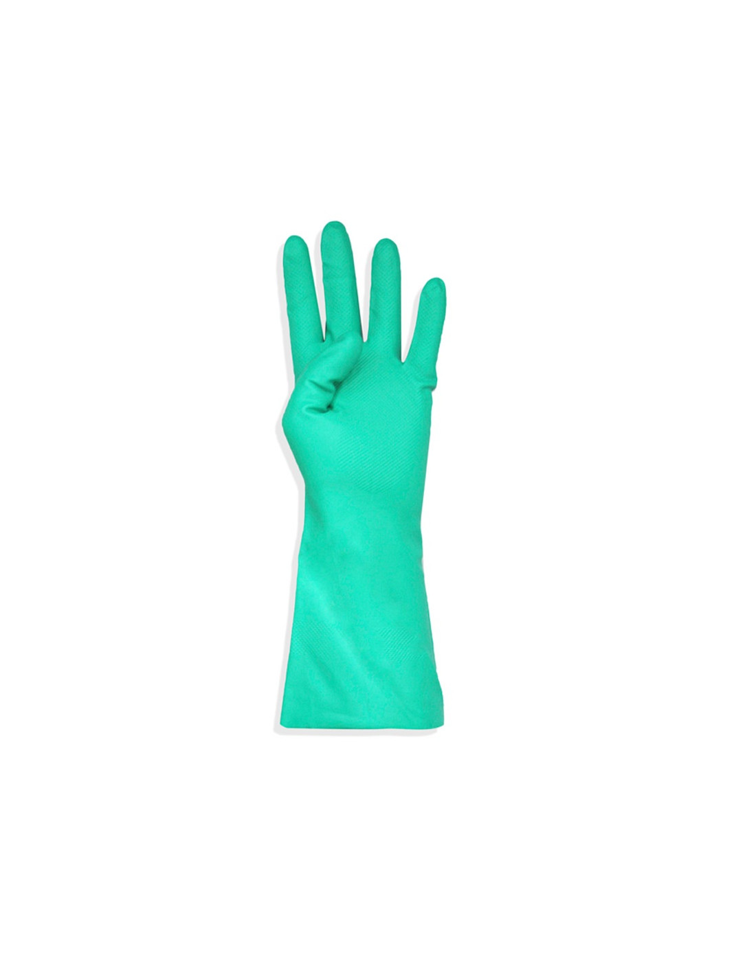 Gant de nitrile vert, intérieur floqué, longueur 32 cm, épaisseur 0,38 mm.