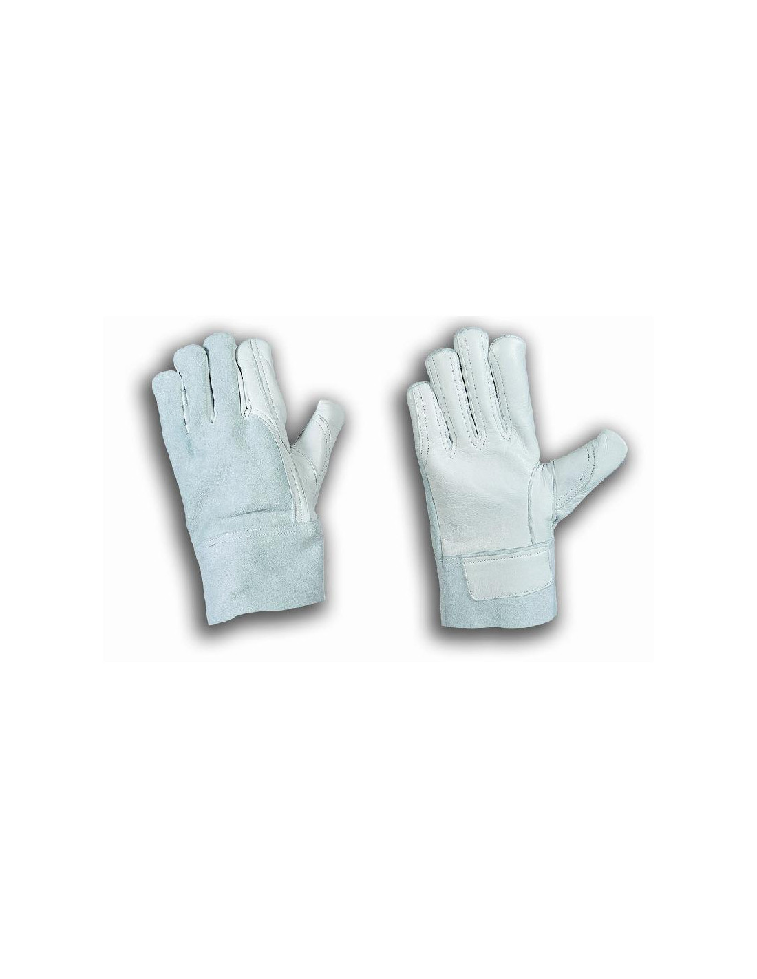Gant en cuir pleine fleur de bovin entièrement renforcé - dos en croûte. Paume en cuir pleine fleur de bovin (épaisseur environ 1,1 - 1,2mm). Dos en cuir croûte (épaisseur 1,1 - 1,2 mm) à l’exception du pouce et de l’index de pleine fleur de bovin. Manchette en croûte de environ 8 cm de longueur; renfort en pleine fleur de bovin pour la protection des veines. Le gant est cousu avec fil de KEVLAR.