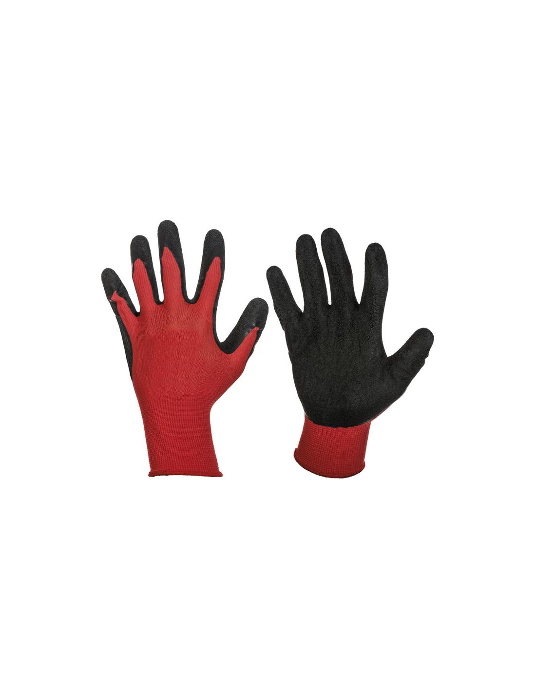 Gant en nylon rouge sans couture-jauge 13 enduit de latex noir sur la paume avec finition sablée pour une excellente adhérence. Poignet tricoté élastique .