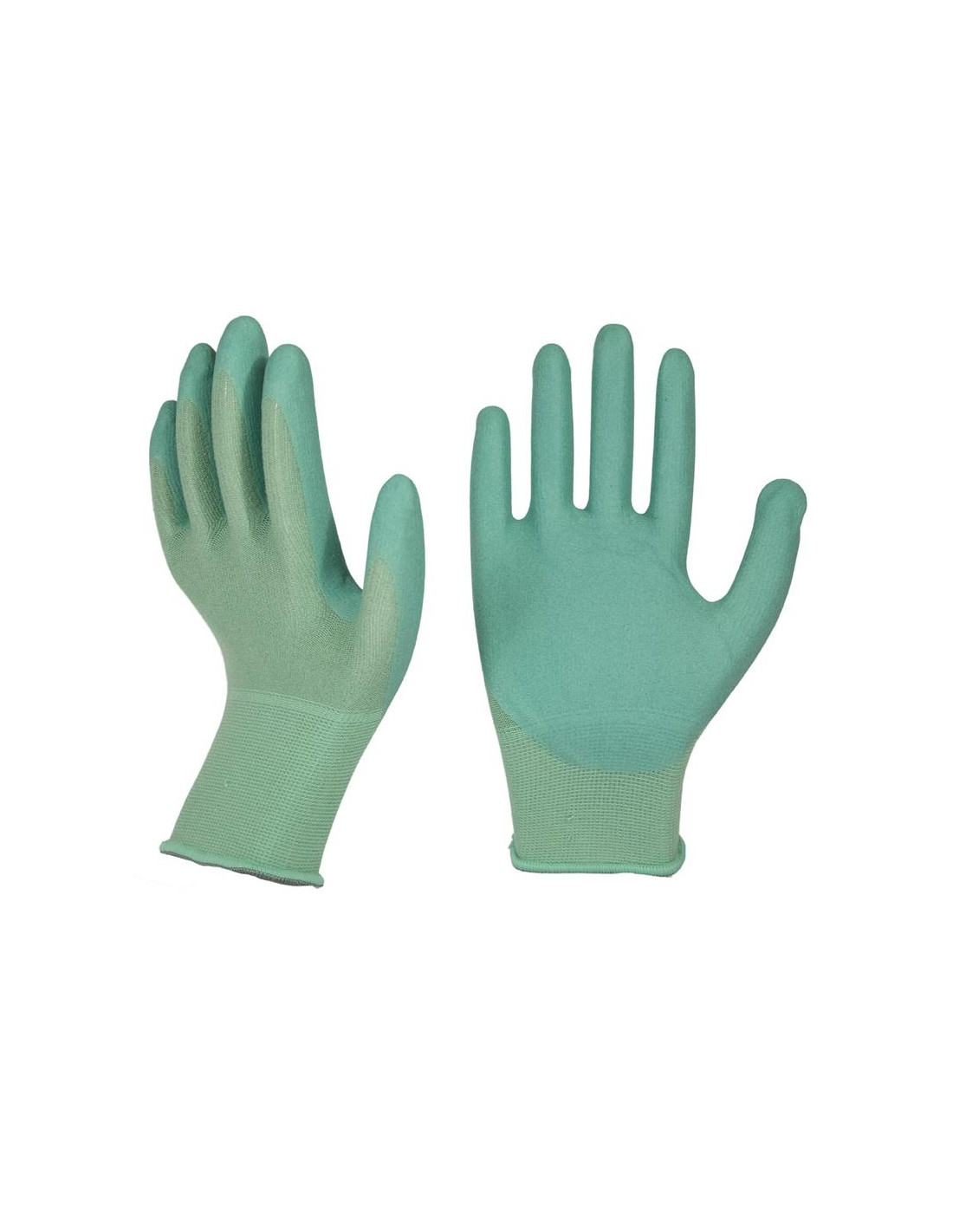 Gant en fibre de Bamboo- Jauge 15, enduction mousse de nitrile. Poignet tricot élastique. Coloris: Vert.