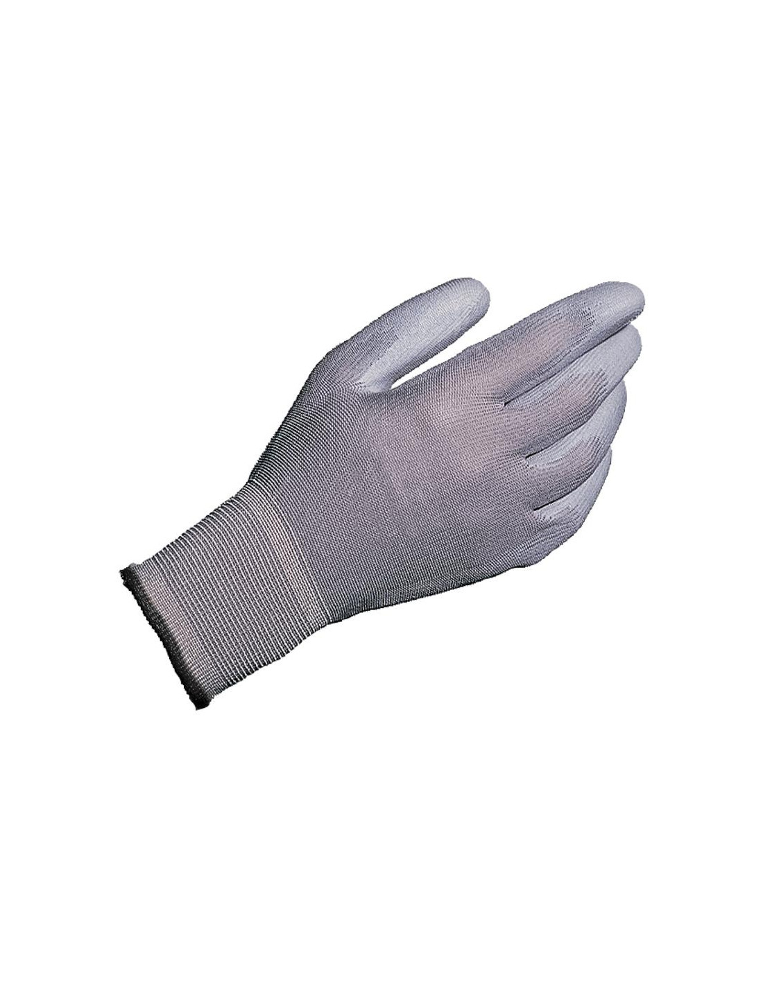 Gant de nylon sans couture-13 jauges enduit polyuréthane gris. Poignet élastique tricoté Adapté pour travaux de precision.