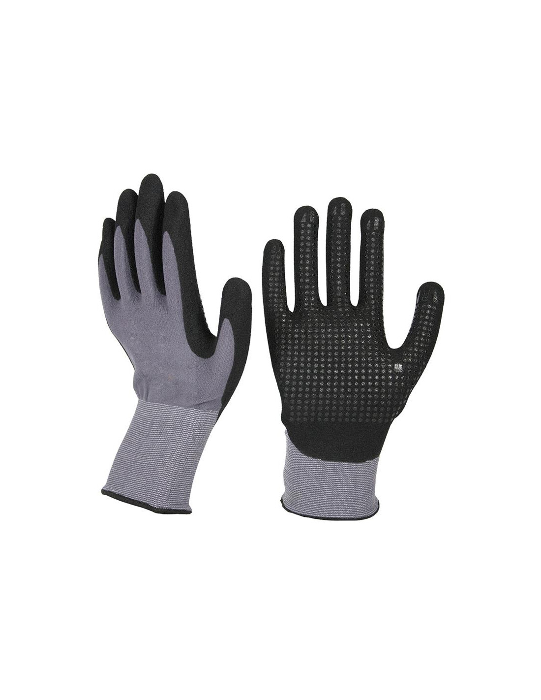 Gant en nylon/élasthanne sans coutures -Jauge 15, 3/4 enduction de nitrile. Finition sablée et picots micro en nitrile sur la paume pour une meilleure ahdérence. Poignet tricot élastique. A utiliser avec écran tactile Le gant appartient à la catégorie des EPI pour la protection contre les risque mécaniques Le gant protège l’utilisateur contre les risques mécaniques de moyenne éntité conformément aux exigences de sécurité énoncées dans la directive européenne 2016/425. Le gant n’est pas adapte au soudage, au contact d’objets chauds, d’outils tranchants et de produits chimiques.