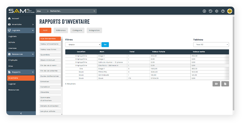 Que vous soyez une petite entreprise, une collectivité ou une grande organisation, SAM vous permet de suivre efficacement l’ensemble de vos actifs. Grâce à un accès illimité pour vos utilisateurs et vos sites, vous gérez votre inventaire en temps réel, où que vous soyez.