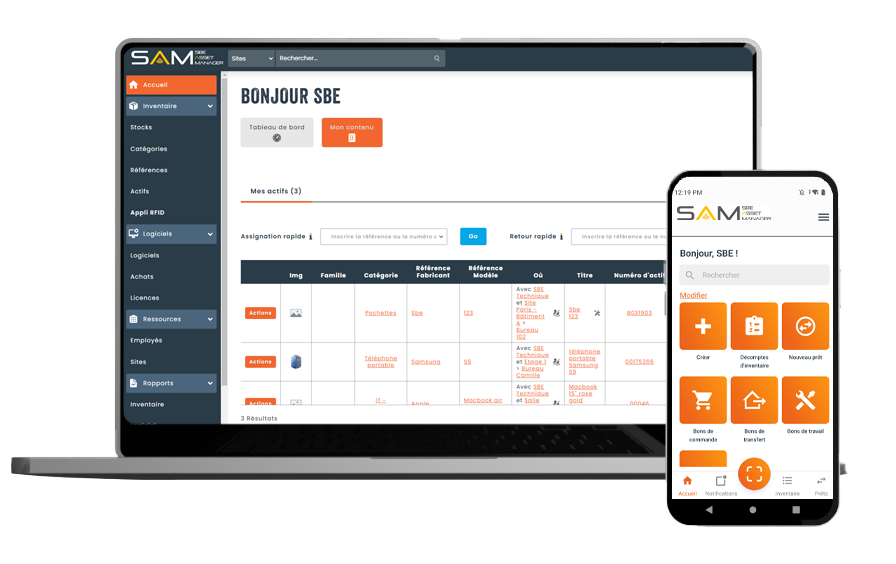 Grâce aux entrées et sorties automatisées, SAM réduit les erreurs humaines et garantit une traçabilité précise et fiable des actifs tout au long de leur cycle de vie.