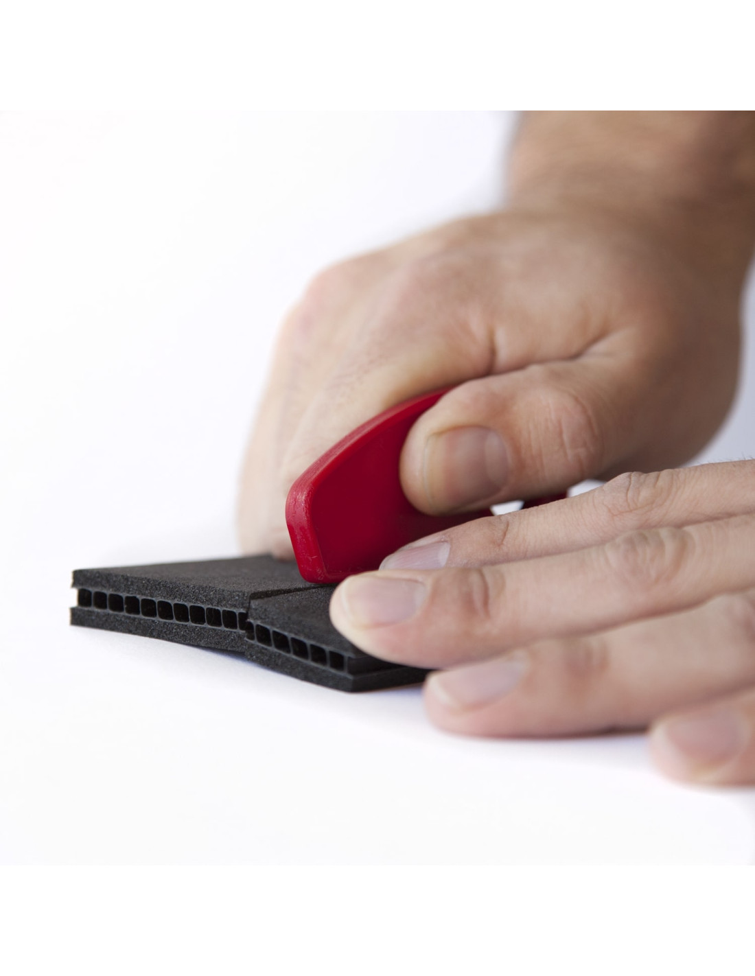 Pour composer votre intérieur idéal, il vous suffit de découper les séparateurs des parois avec l’outil à double lame exclusif trekpak. Ce petit outil est muni d’un d’un guide central qui suit le centre ondulé des parois et vous empêche ainsi de déraper et de découper une partie non voulue.