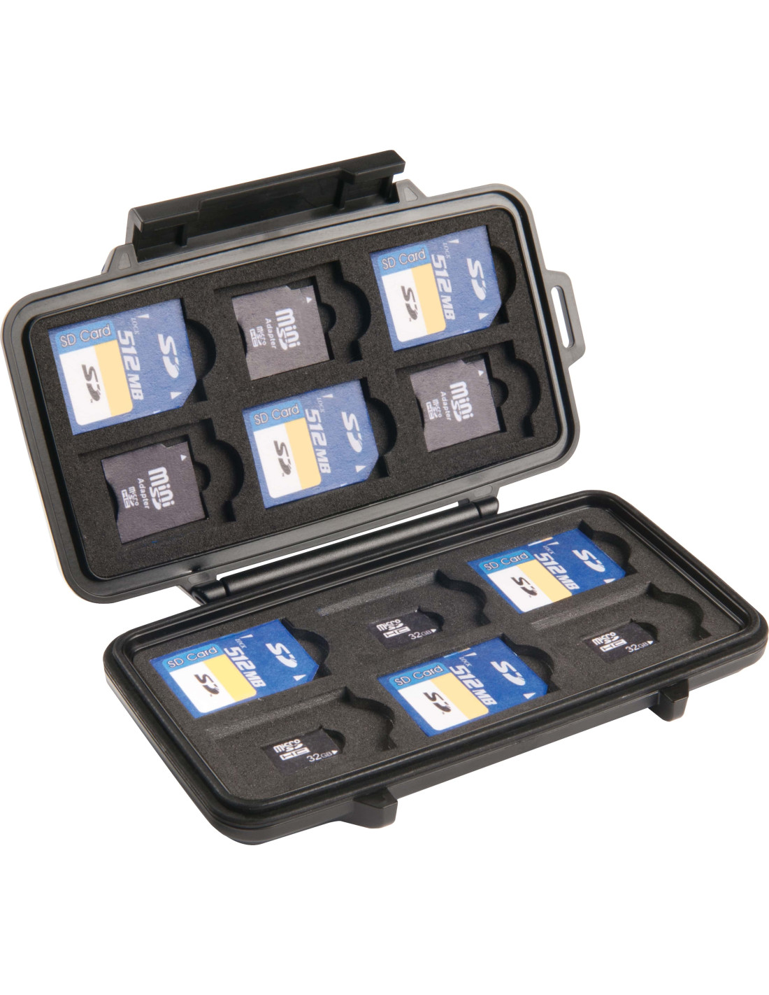 Que ce soit pour des cartes micro SD ou des cartes Compact Flash, notre microcase protégera efficacement vos cartes des stockages lors de vos déplacements grâce à la mousse qui absorbe les chocs. Cette microcase est faite en résine polycarbonate qui la rend extrêmement résistante aux chocs et elle est également résistante à l’eau, gardant vos cartes bien au sec. Il est possible de stocker plusieurs cartes d’appareil photo ou de téléphone portable donc nos microcase. La version pour cartes SD vous permet de stocker soit 12 cartes SD, 6 cartes Mini SD et 6 cartes Micro SD.Si vous souhaitez une protection pour carte CF, notre microcase permet de stocker jusqu’à 6 cartes CF.