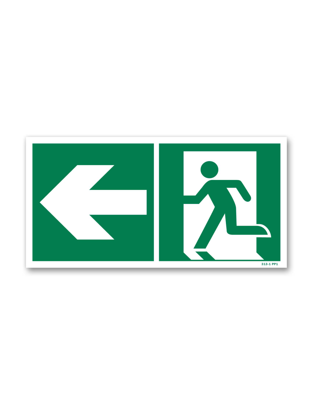 Ce panneau indique la présence d’une sortie par une porte à gauche