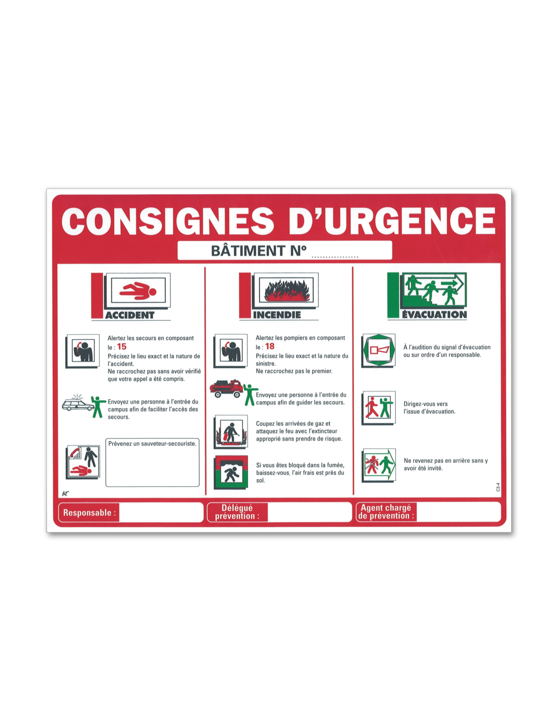 Ce panneau rassemble les consignes en cas d’incendie, de l’alerte jusqu’à l’évacuation des personnes.