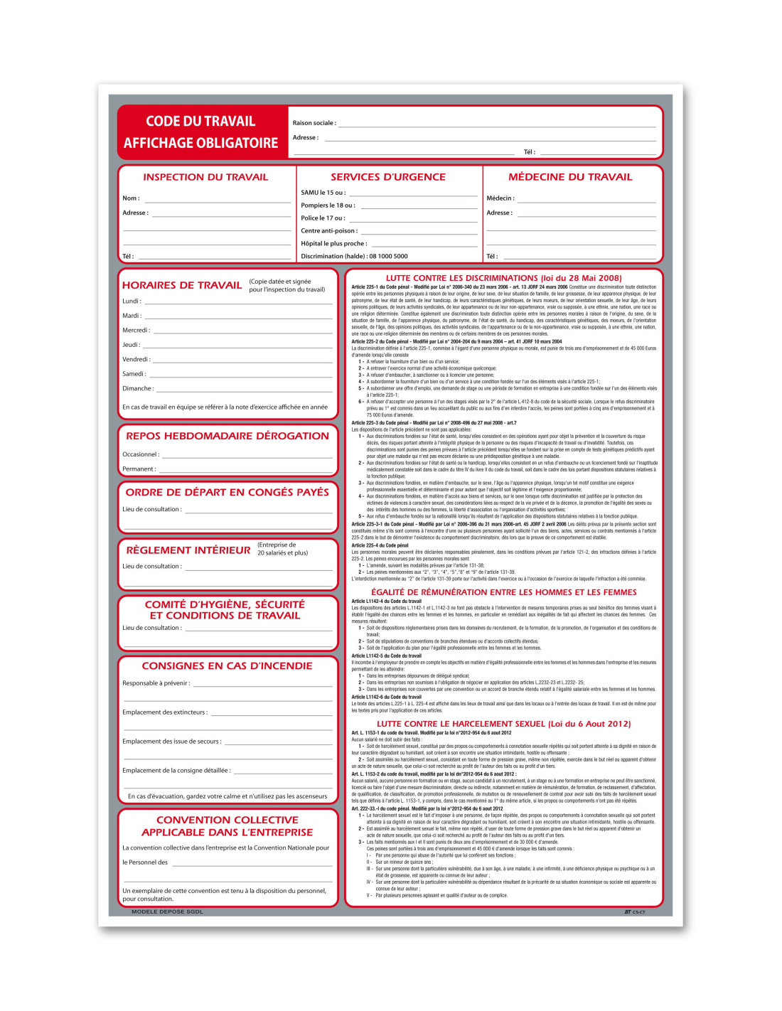 Ce panneau qui doit être obligatoirement affiché rassemble toute la législation du travail