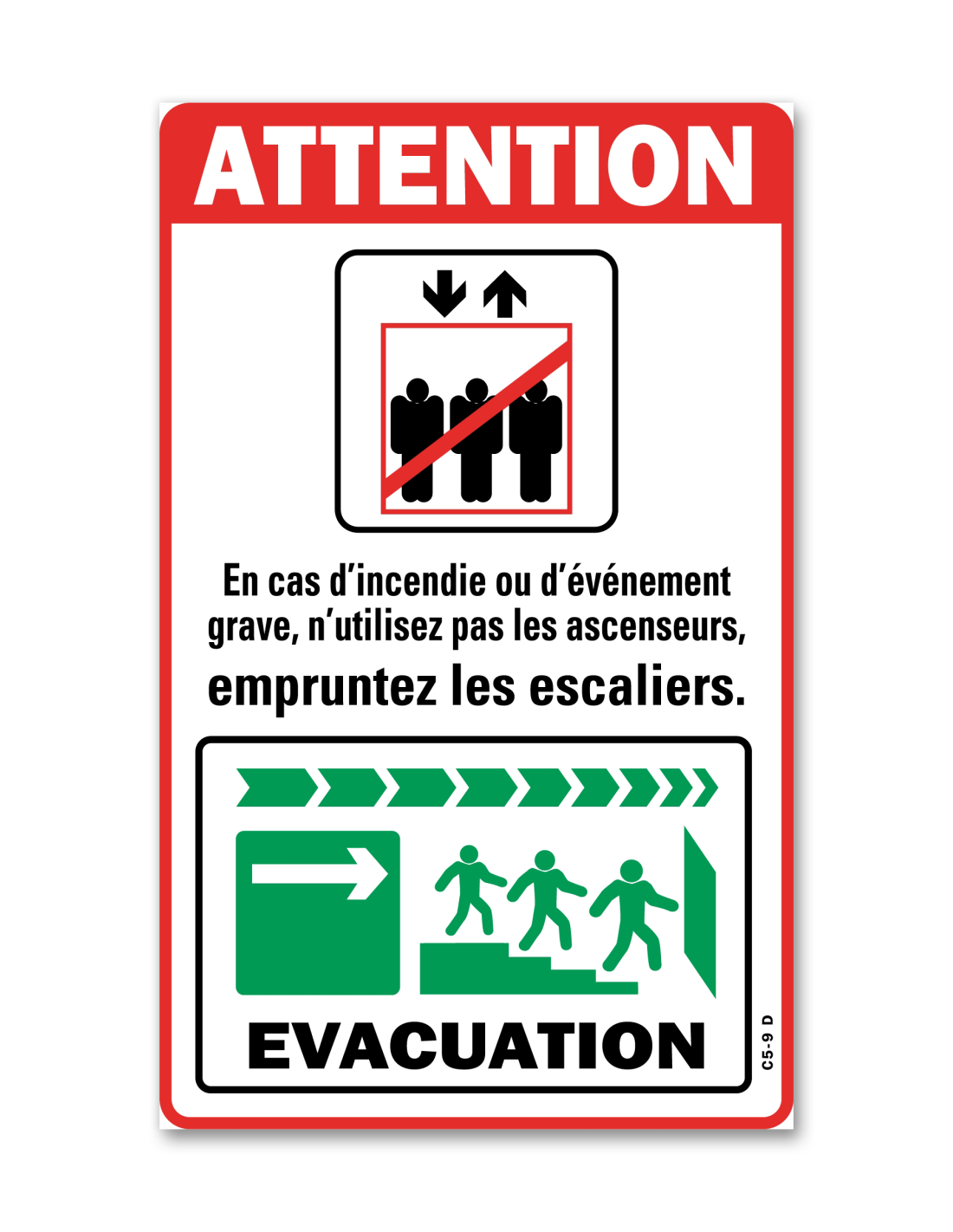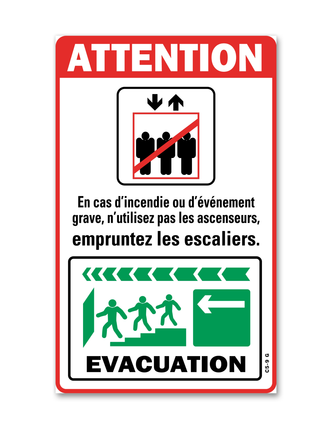 Consigne interdiction de prendre l’ascenseur, veuillez emprunter les escaliers - evacuation à droite