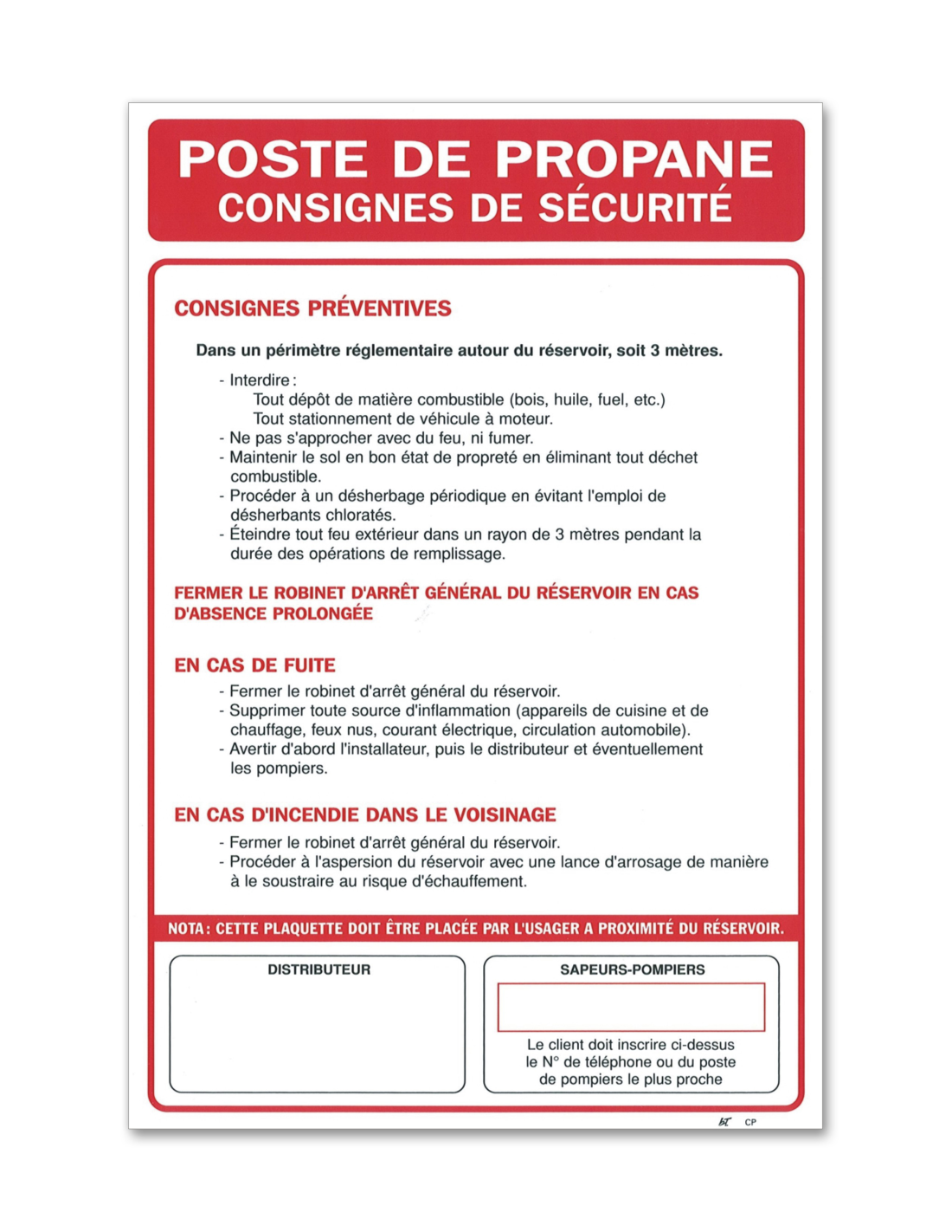 Ce panneau rappelle les consignes de sécurité autour d’un poste de propane