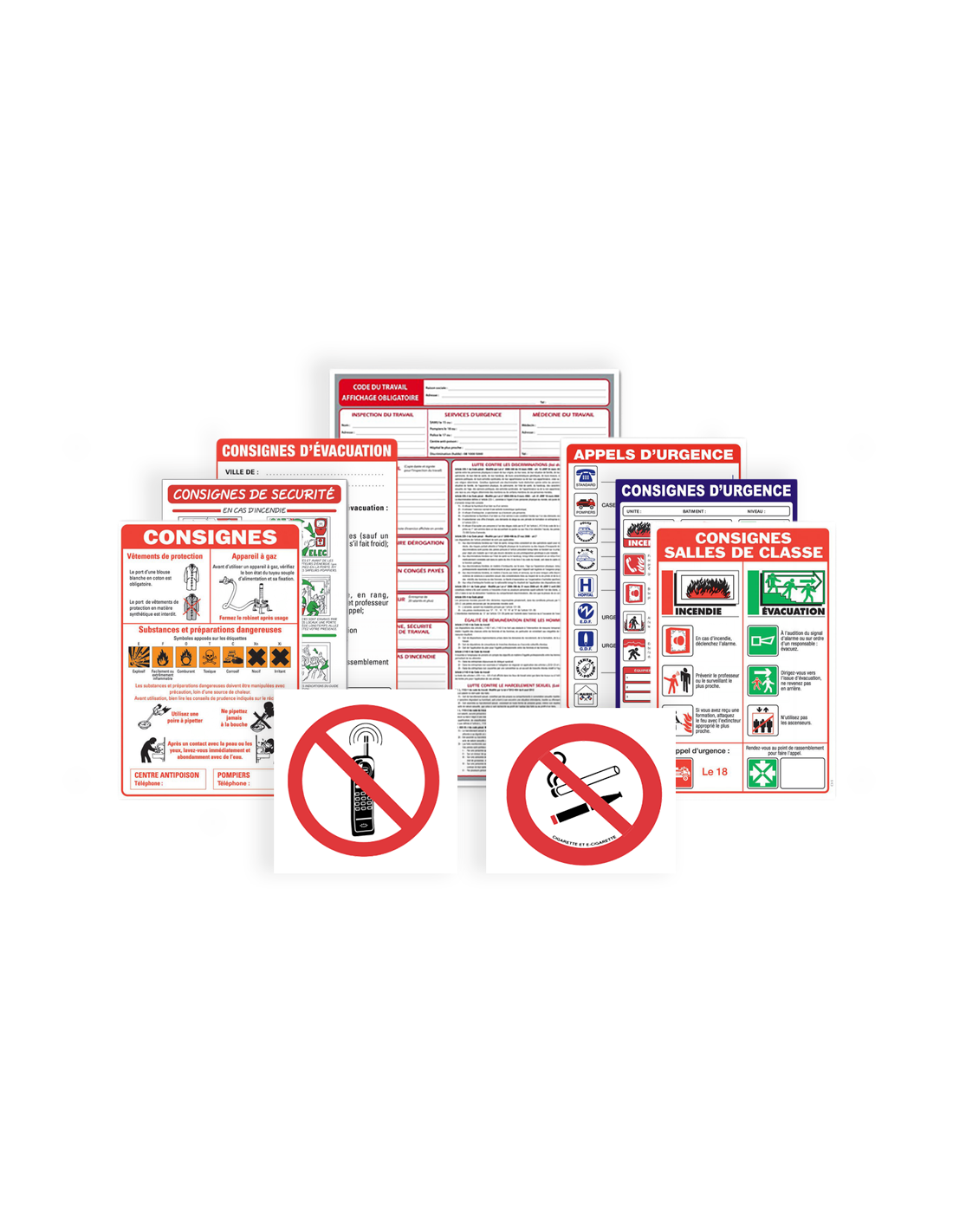 En achetant notre affichage obligatoire - Ecoles, vous pouvez réaliser une économie de 15% sur le prix total. Grâce à notre kit affichage obligatoire spécifique aux écoles, collèges et lycées, vous pouvez collecter les informations de base et obligatoires à afficher dans vos locaux. Avec ce kit, vous serez en mesure de vous conformer aux lois du travail français.