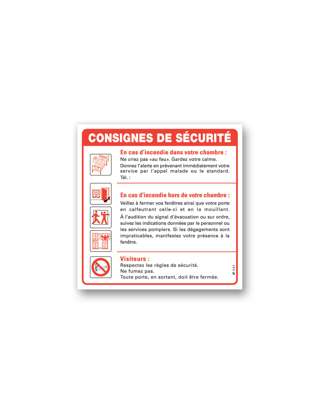 Ce panneau spécialement conçu pour les bâtiments avec hébergement rassemble de façon simple les consignes d’urgence et de sécurité.