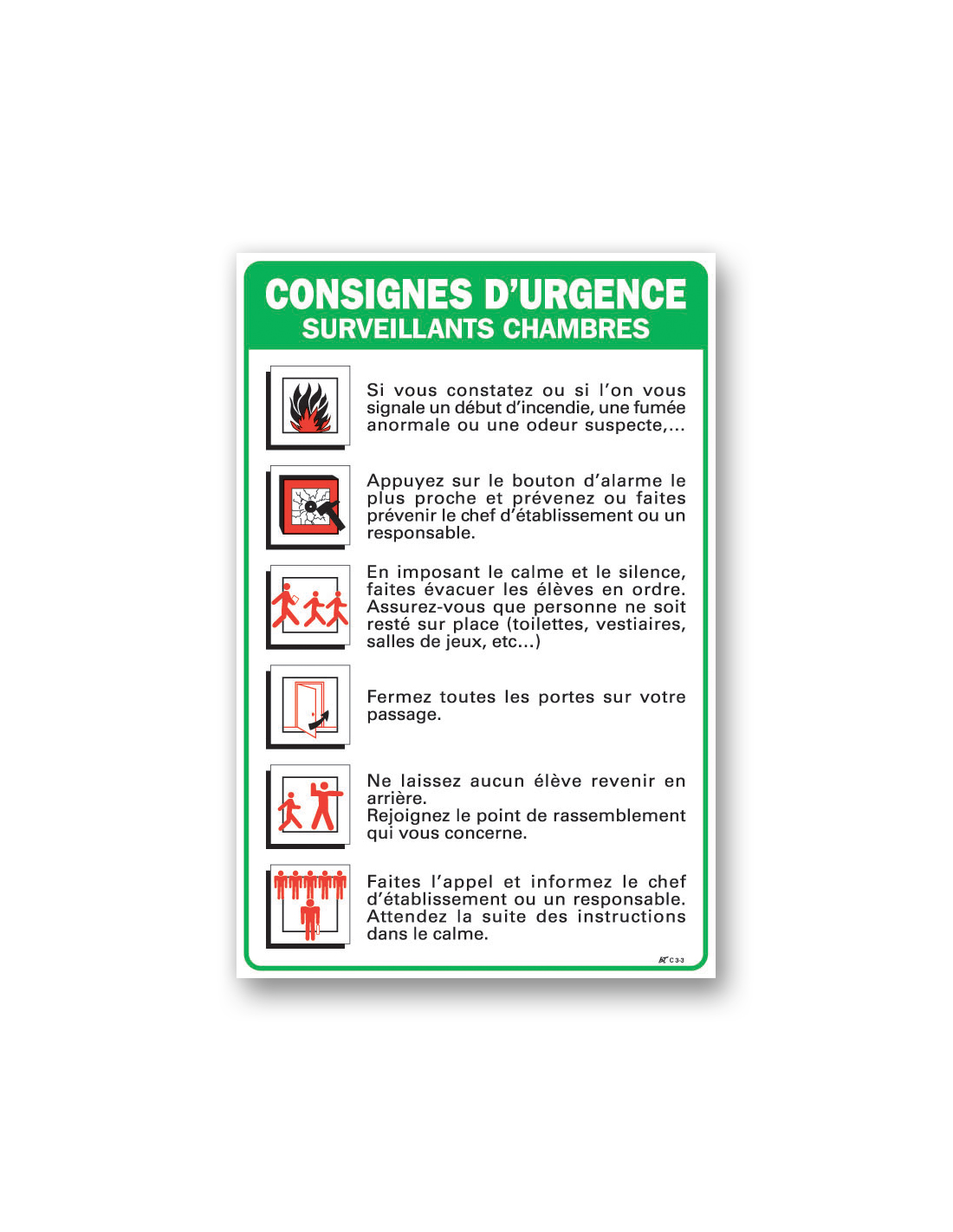 Ce panneau, spécialement conçu pour les surveillants d’école rassemble toutes les consignes d’urgence en cas d’incendie.